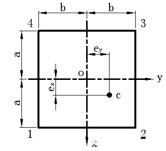 要求電子設(shè)備的質(zhì)心與支承隔振器的剛度中心完全重合是很難實現(xiàn)的。也就是說,在工程中,出現(xiàn)偏心現(xiàn)象是必然的。在圖1中,當(dāng)質(zhì)心c偏離幾何形心o有和時,這將會造成設(shè)備的動態(tài)穩(wěn)定性下降,隔振效果變壞。當(dāng)系統(tǒng)中各隔振器的實際固有頻率間的相對偏差率滿足下列條件: